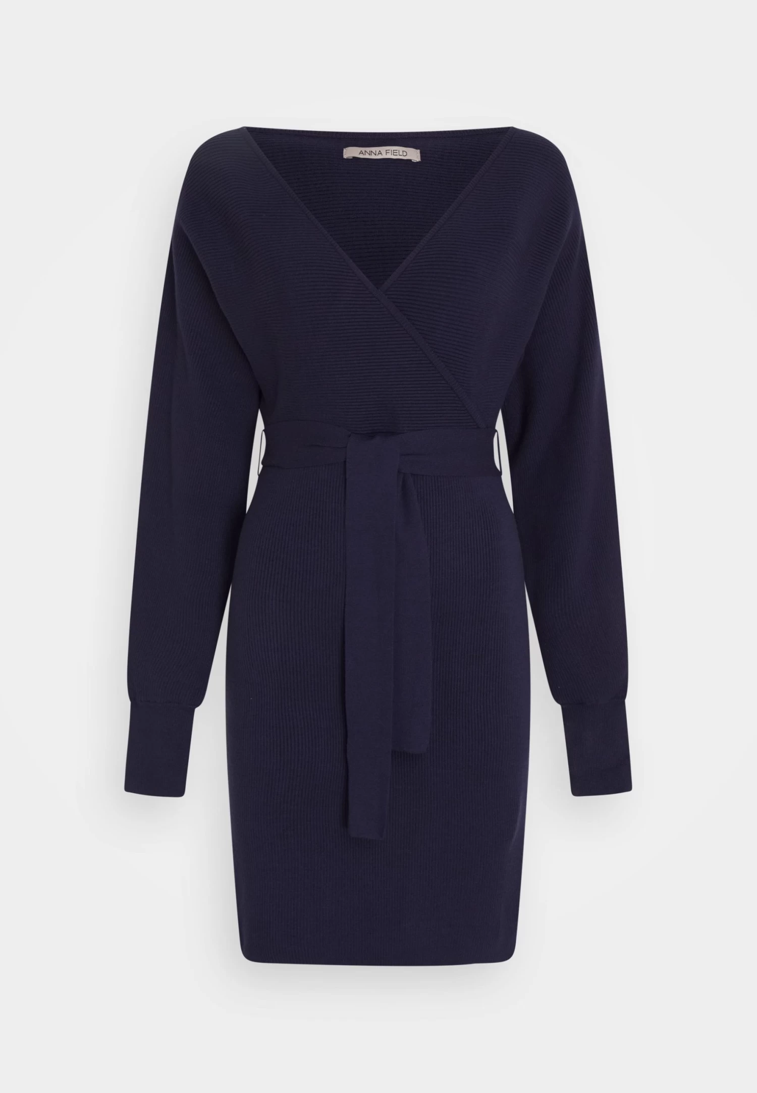 Anna Field Wrap V Ausschnitt Mini Strickkleid Mit GĂĽrtel – Robe Fourreau – Dark Blue