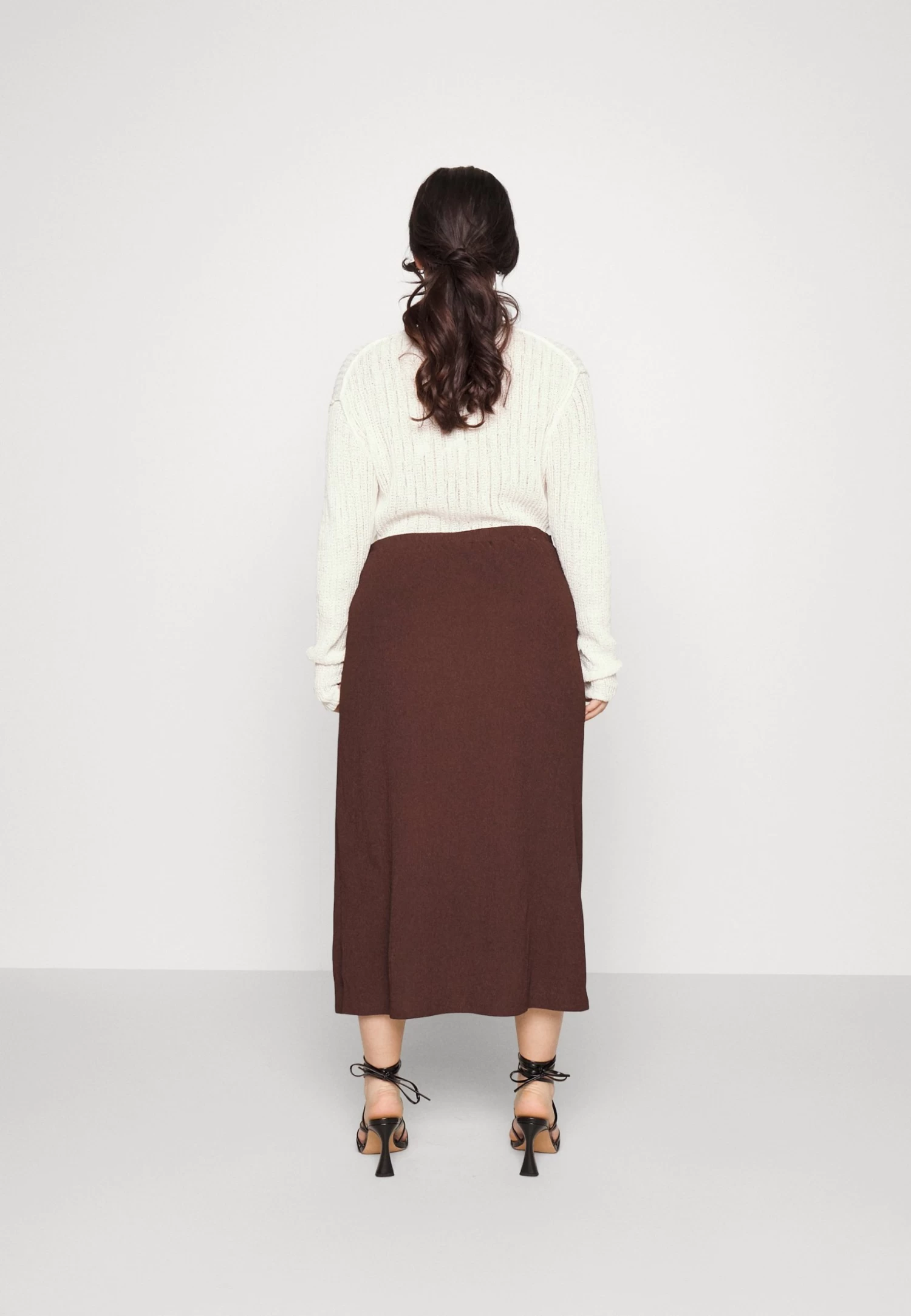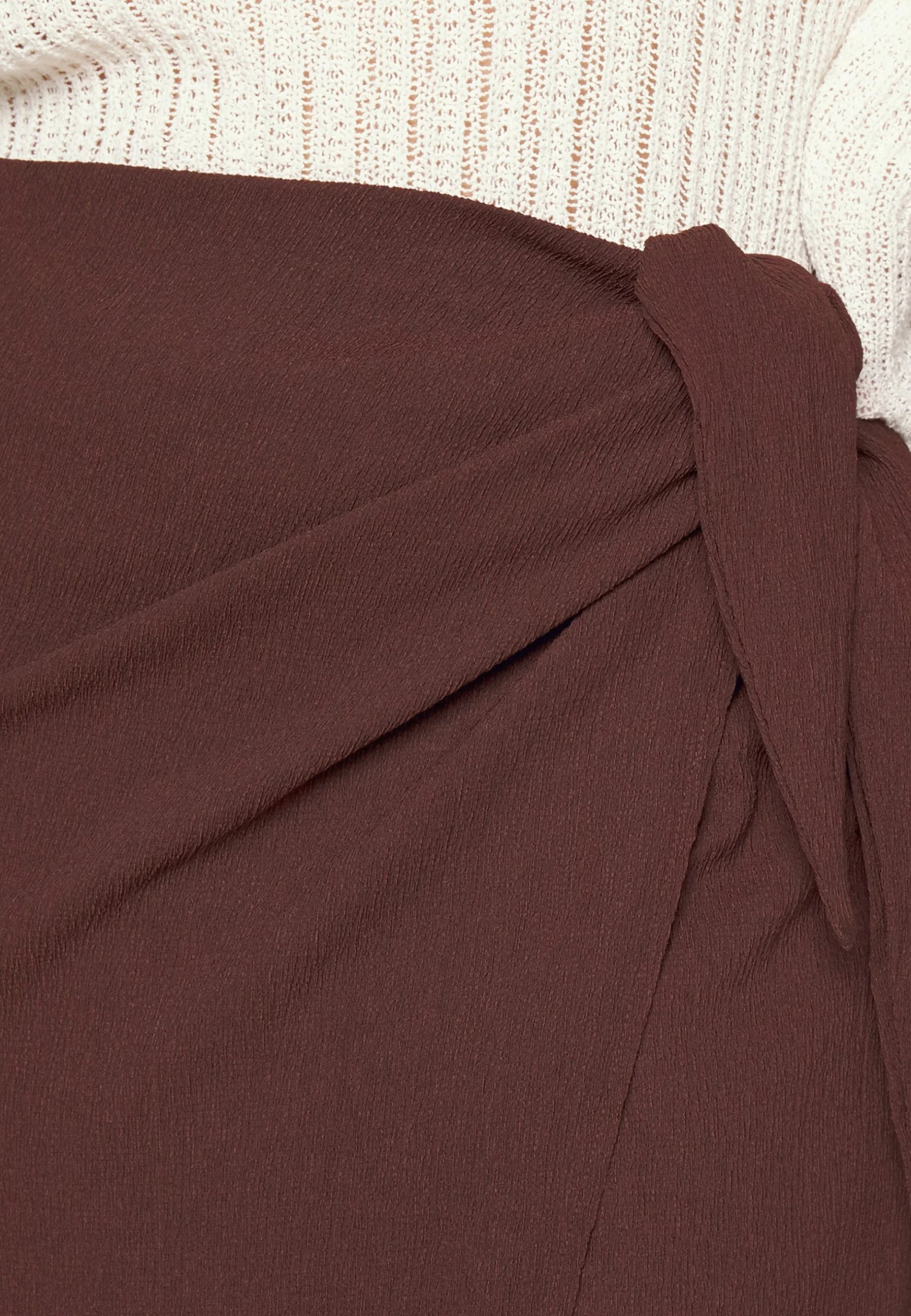Curvy Textured Sarong Midi Skirt – Jupe Portefeuille – Brown