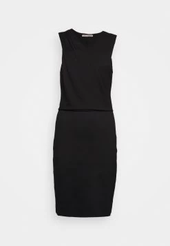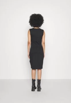 Drapped Neckline Smart Bodycon Sleeveless Mini Dress – Robe En Jersey – Black